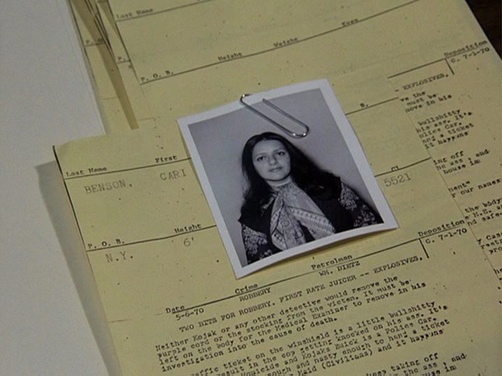 Two patrol cops, Chris Marquez (John Hesley) and Barney Sullivan (Sidney Clute), pull over Forbes (Henry Brown) for driving a suspicious looking car. (Need I add that Forbes is black?) After Forbes tells them that he is connected with United Repossessions, two thugs connected with him and this company suddenly drive up behind the cops' car and start to give the two of them a bunch of mouth. As Marquez starts to call for backup, one of the thugs backs up and then rams the police car, knocking Marquez to the ground. Forbes escapes with them and shoots Sullivan dead. Kojak marshals his men to leave no stone unturned in the quest to find the killer of Sullivan, who was a good friend of McNeil. Sam Bernard (Bernie Kopell), whose stolen Cadillac Forbes was driving, turns up at the station to report it. An investigation reveals that Bernard was killing time for three hours while the theft was going on, he lied about where the car was parked and he is also heavily in debt. When Kojak and Crocker go to visit Bernard in his office and start making various accusations, he refers them to his lawyer. The three men involved in the confrontation at the beginning of the show, including Forbes, turn up for a meeting with Bryan LeBlanc (David Ogdon Stiers), the big boss of an elaborate scheme involving auto loans and car insurance. LeBlanc calls them "The Three Stooges" for having knocked off Sullivan. He tells them he intends to take some of their share in the proceeds to pay for expenses like lawyers, which does not go over very well. Further investigation discovers that several cars stolen in a manner similar to Bernard's have been financed at City National Trust. Stacowski (Emory Bass), the manager of the place, is very co-operative with Kojak in finding out which of his three female employees who handle delinquent accounts pending repossession may be involved in the scheme. Kojak and the cops raid a location where stolen cars are being repainted, thanks to some persuasion with a crook named Freddie the Fender (Walter Wonderman) who was driving one such car. There they find Bernard dead, along with one of the two thugs. Crocker and Saperstein visit Anslow (Del Hinkley), whose car was stolen and who was contacted by a "Mr. Roberts" (LeBlanc). With the help of Stacowski, Stavros pretends to be another guy in debt who will hopefully receive a visit from Roberts, which happens very quickly. After he visits Stavros, the cops follow LeBlanc, but he gives them the slip. When Stavros leaves his car at the appointed parking lot, Forbes shows up to take it. The cops tail him for almost 5 minutes, including an exciting chase, but the car flips over and Forbes is incinerated. Marquez goes to the bank to keep an eye on the three women from the finance department. When Brown's ID is recovered from the car, it shows he is friendly with one of them named Victoria Goss (Beverly Dixon). Marquez follows her, including a hectic run on the street trying to catch up with a bus she has taken, to an apartment building and then calls the other men. Stavros pretends to be a cat outside her room, where it just happens she is meeting LeBlanc. As the door is opened, Kojak says, "Meow, baby."